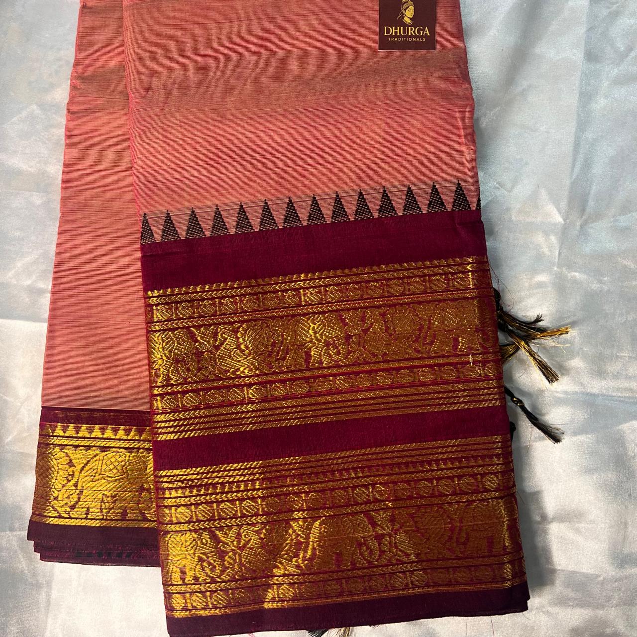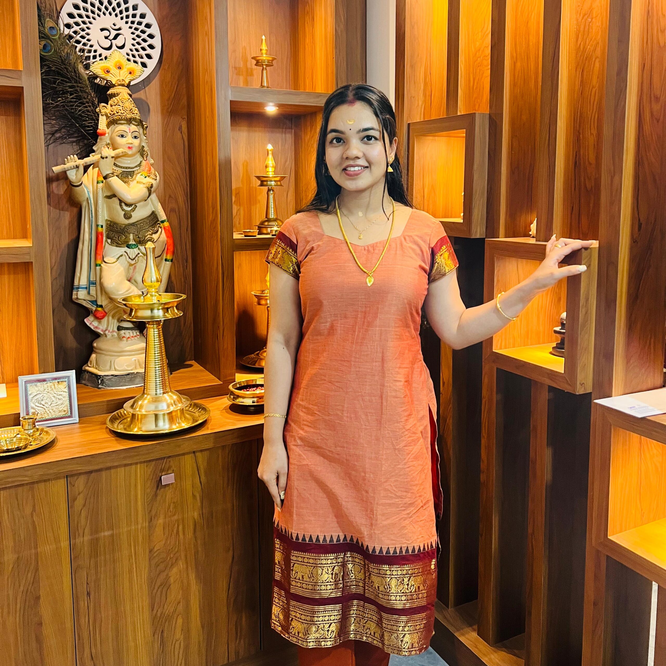 Handloom Dusty Orange And Maroon Kanchi Cotton Churidar Set (Unstiched)
